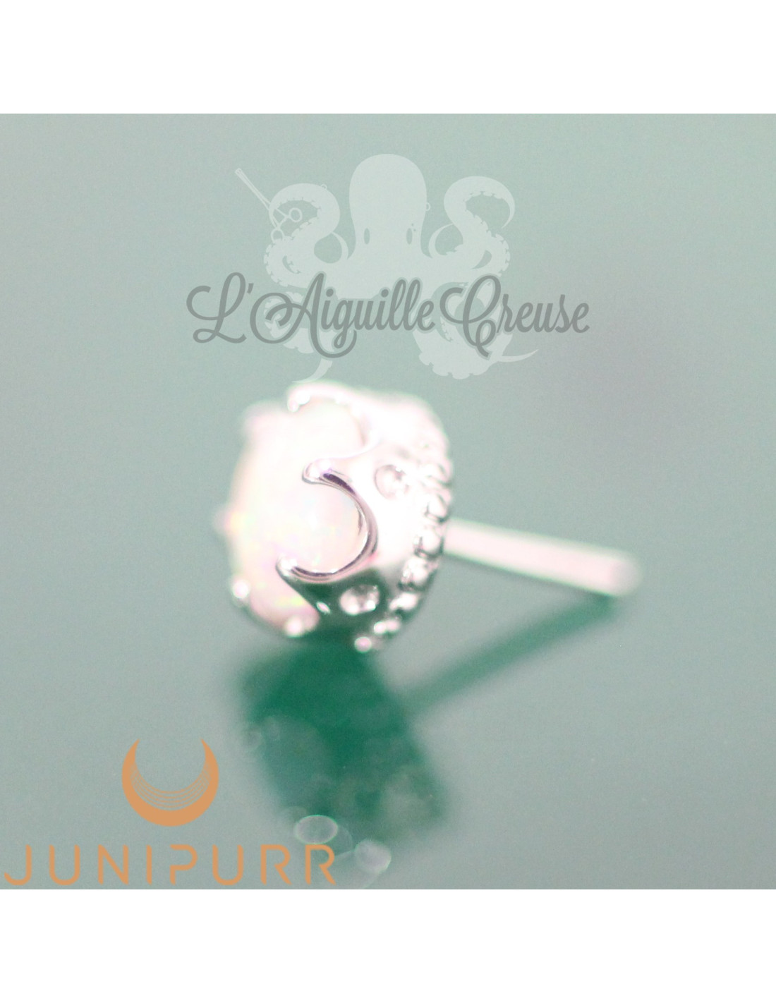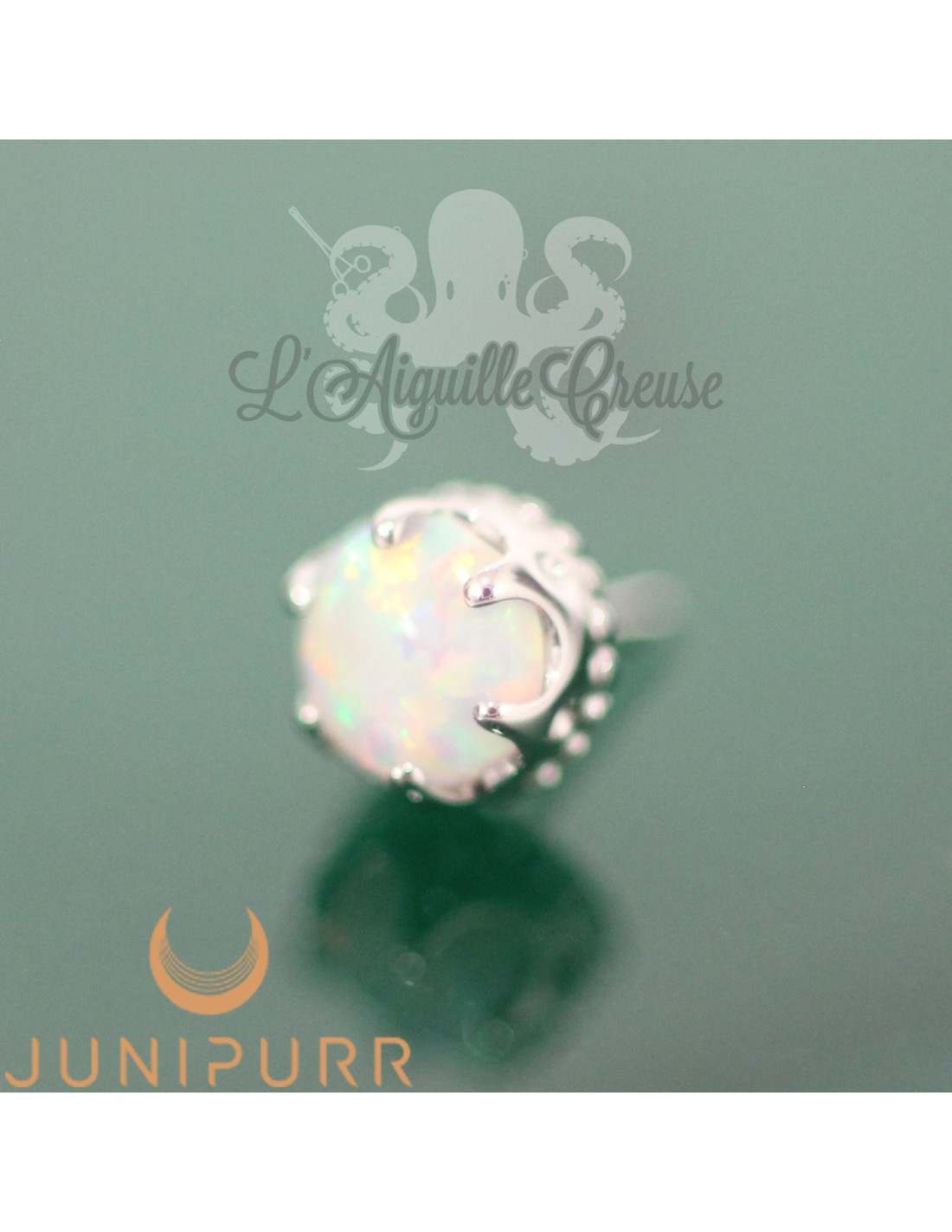 Accessoire threadless en or blanc 14 carats et opale synthétique réalisé par la marque Junipurr.