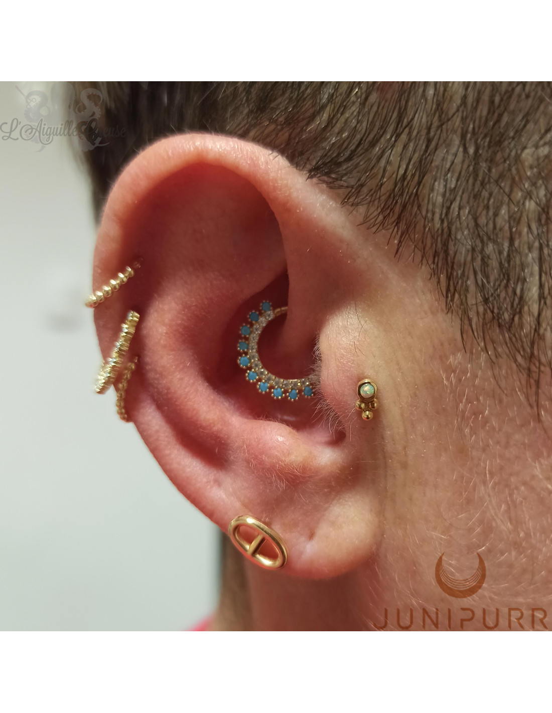 Accessoire threadless en or jaune 14 carats et opale synthétique réalisé par la marque Junipurr.