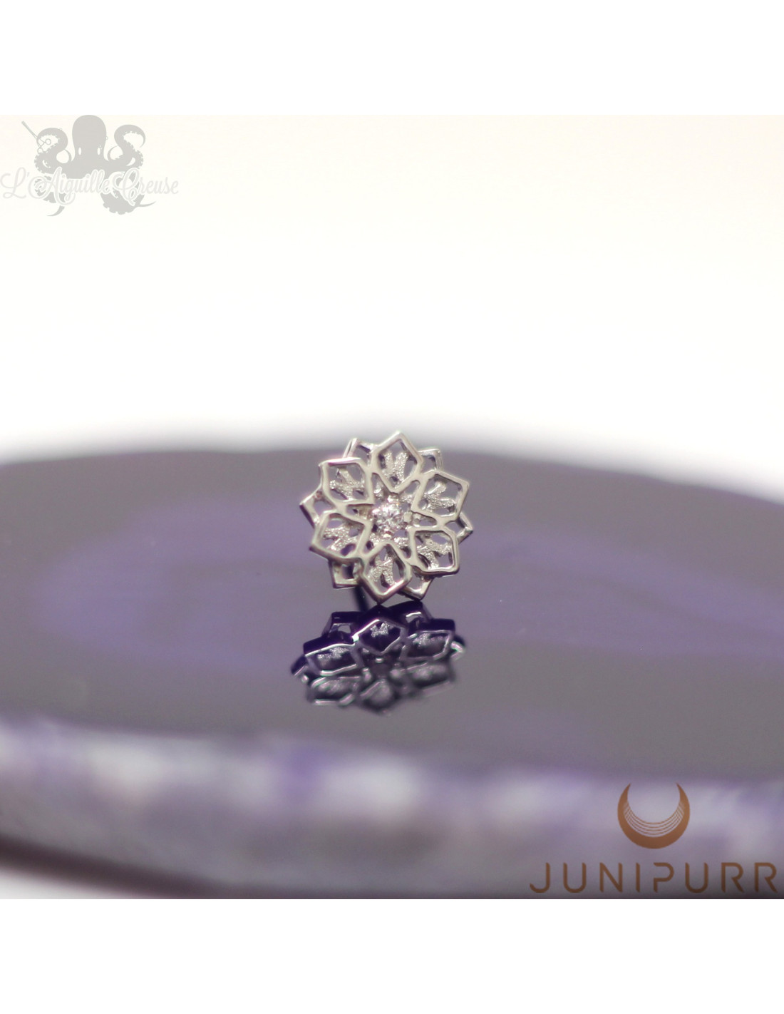 Accessoire threadless en or blanc 14 carats et zircon réalisé par la marque Junipurr.