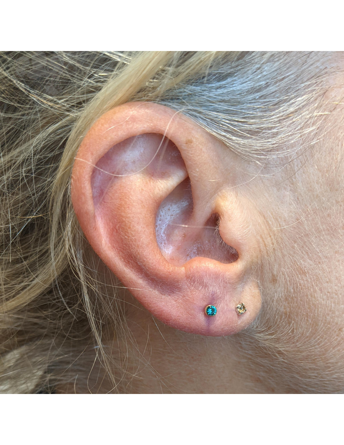 Accessoire threadless en or jaune 18 carats orné d'une tourmaline Afghane nano gems.