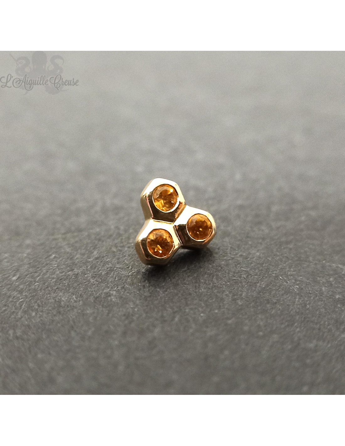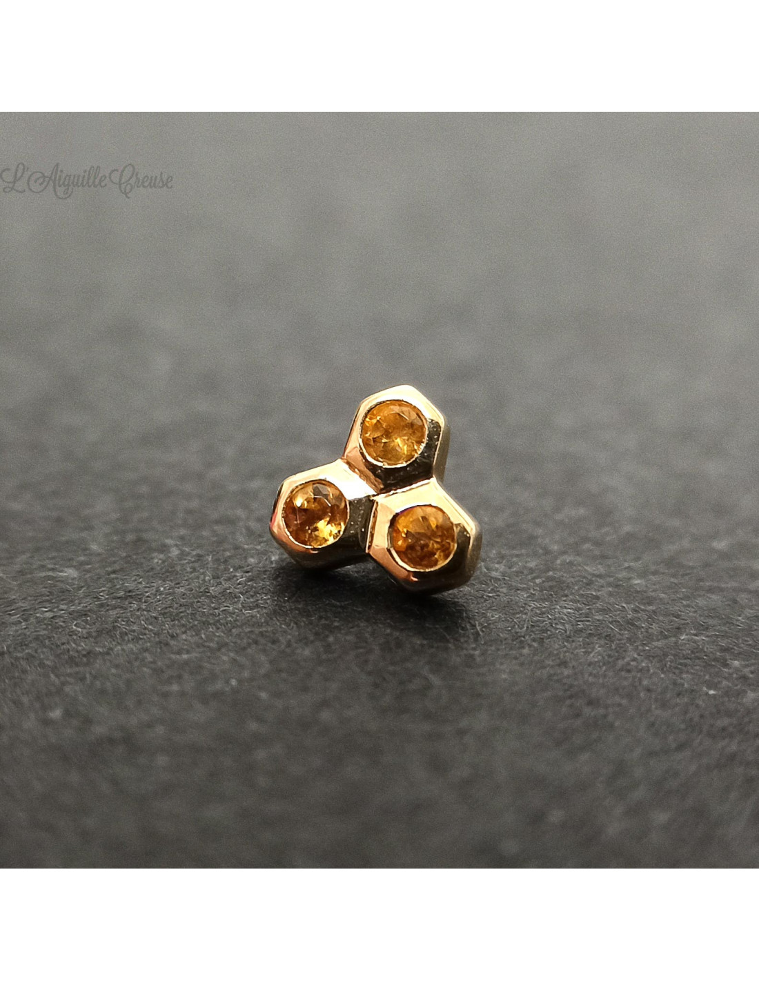 Accessoire en or jaune 18 carats et citrines de 5 mm de longueur.