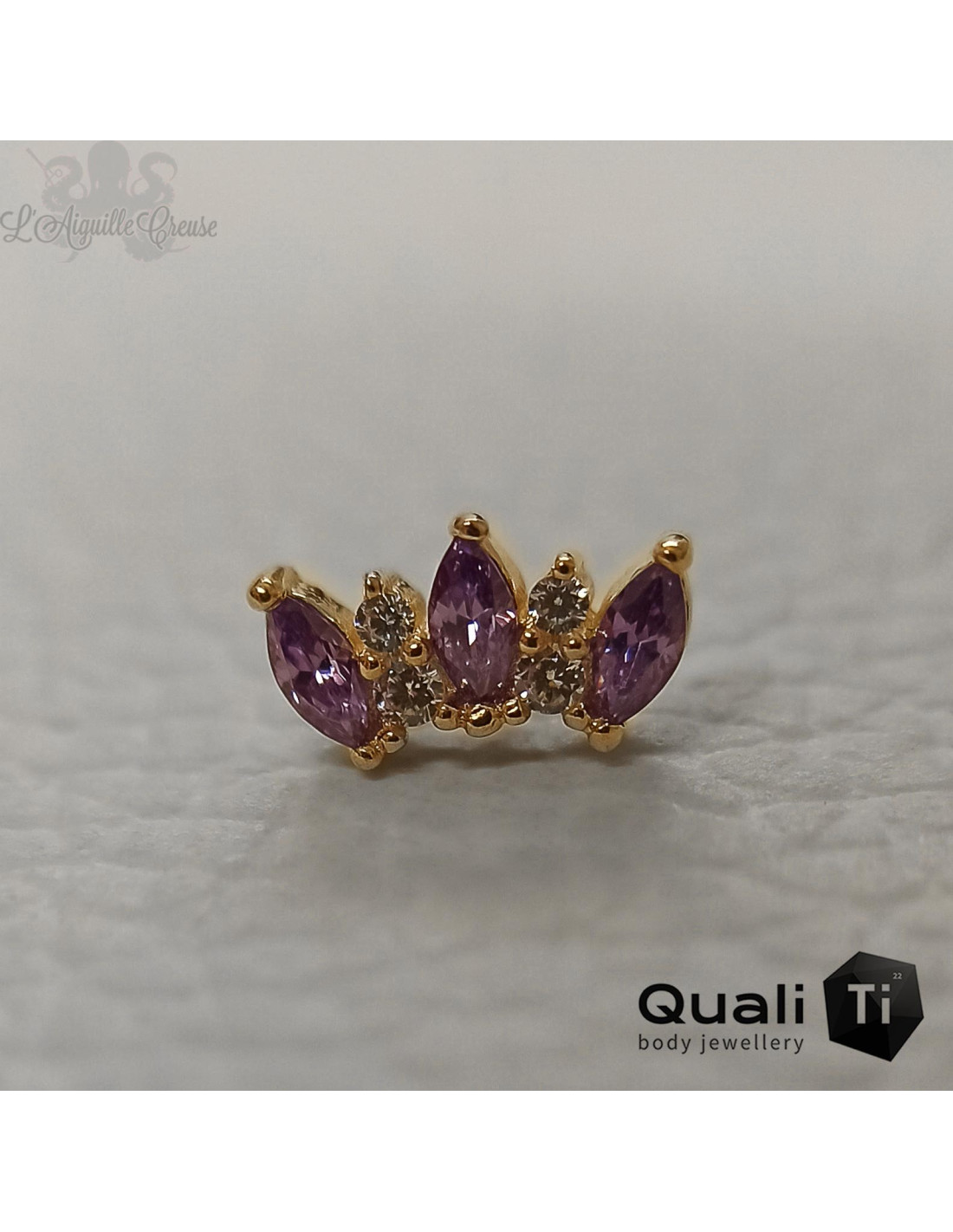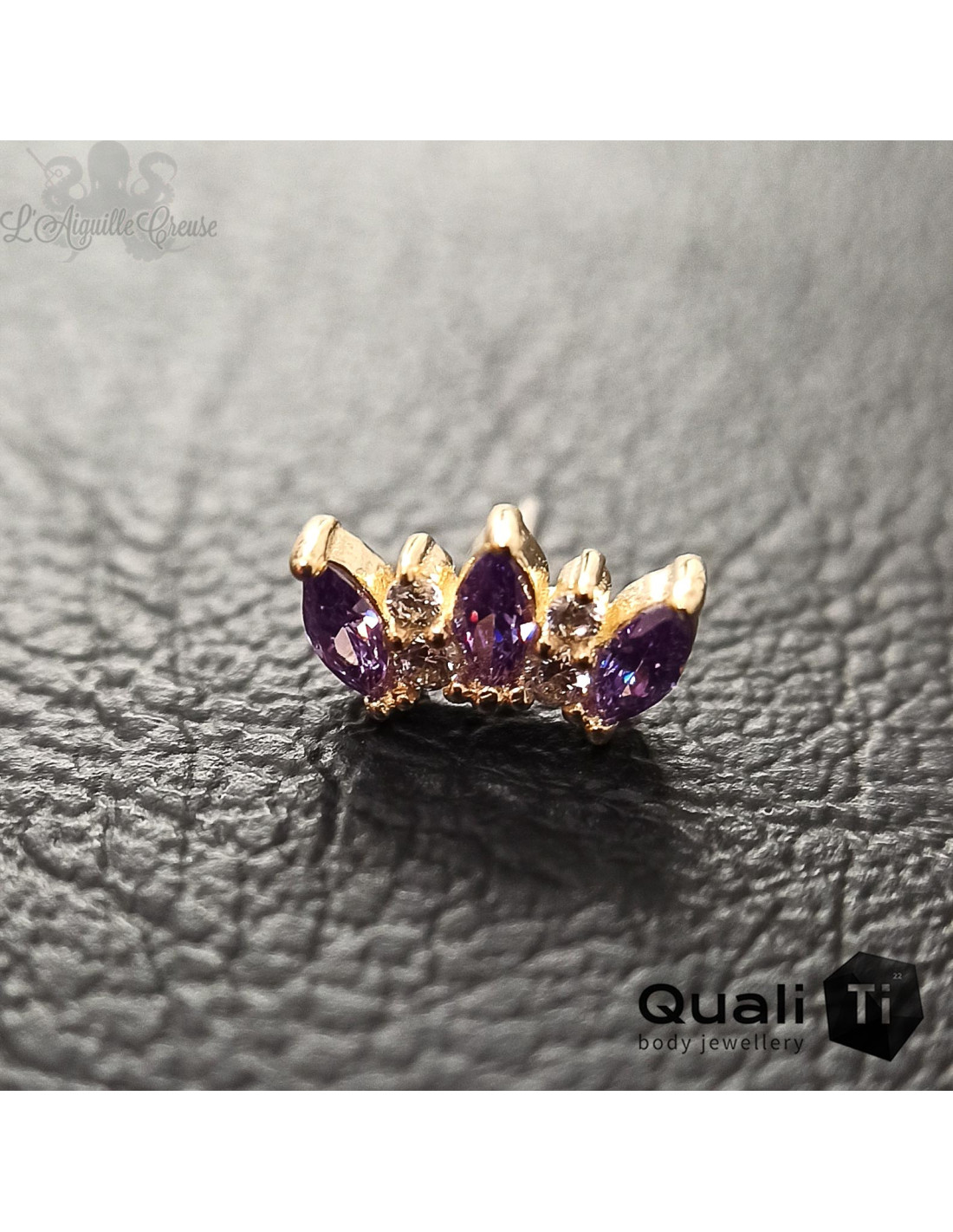 Accessoire threadless en or jaune 14 carats et zircons, réalisé par la marque QualiTi.