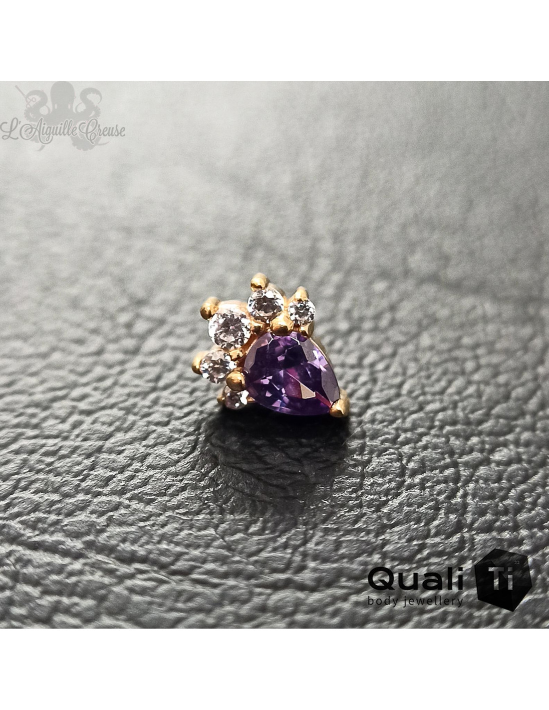 Accessoire threadless en or jaune 14 carats et zircons, réalisé par la marque QualiTi.