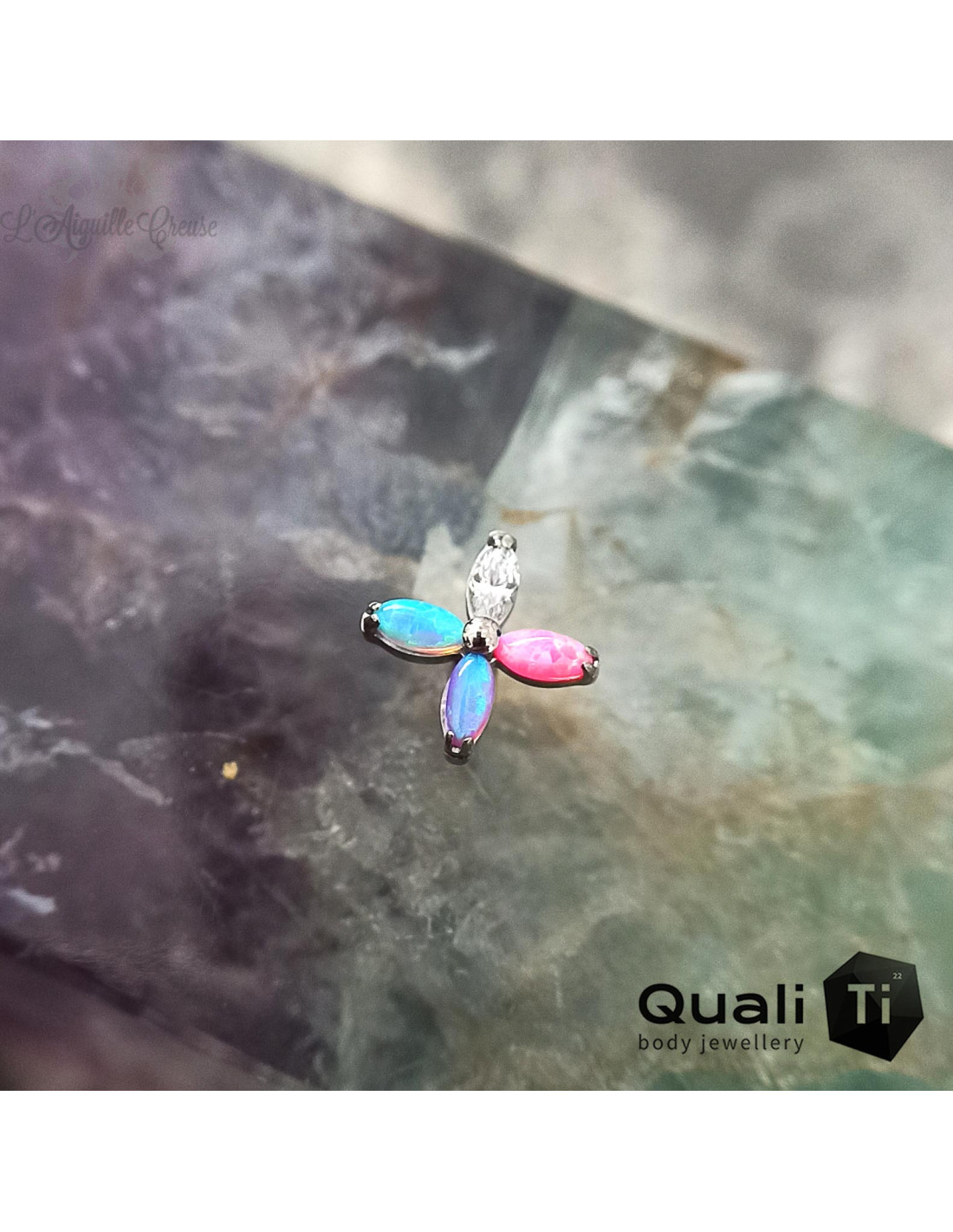Fleur en titane orné d'opales synthétiques et d'un zircon Threadless - QualiTi