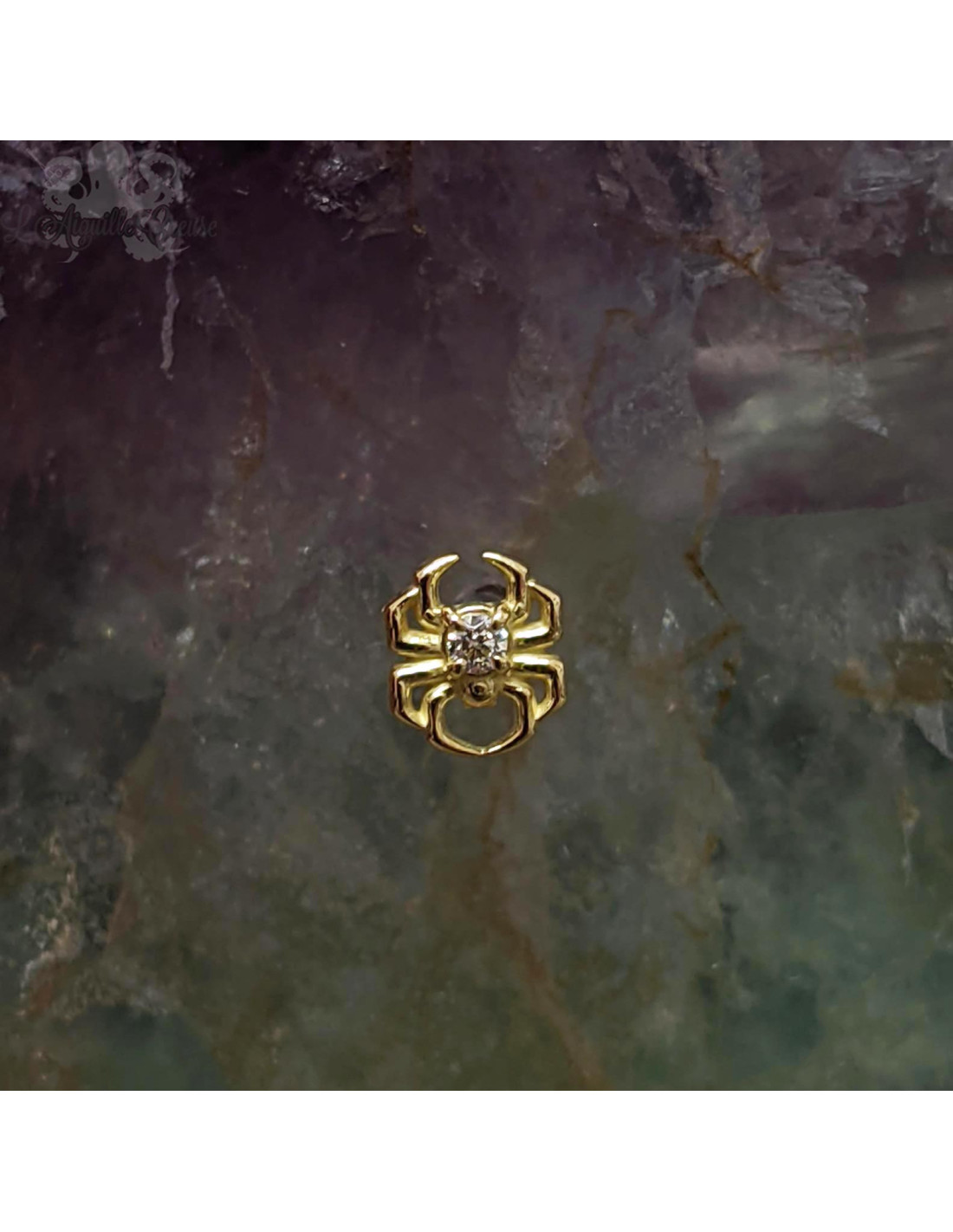 Araignée threadless en or jaune 18 carats et zircons. L'accessoire mesure 6 mm.