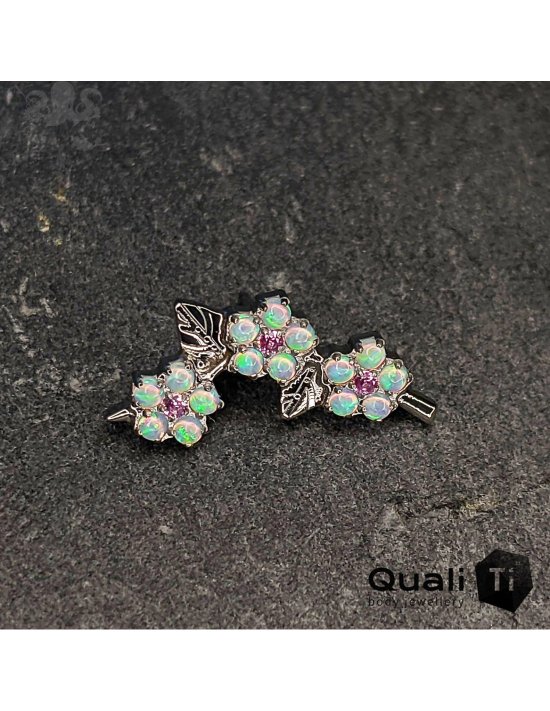 Accessoire threadless QualiTi en titane implantable (ASTM F-136) orné d'opales synthétiques.