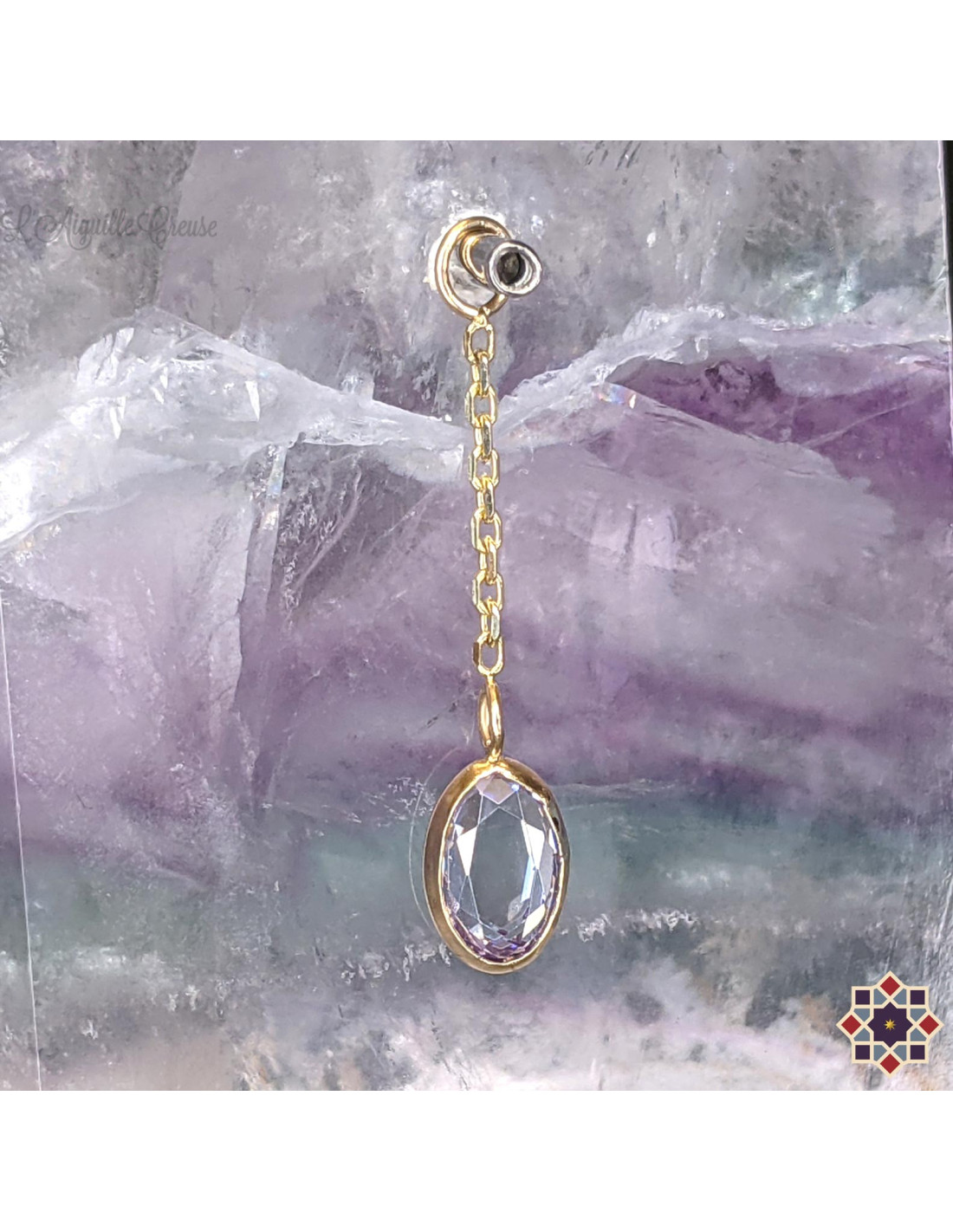 Charme chainette en or jaune 14 carats  et zircon de 6,5 par 4,3 mm réalisé par Taracea.