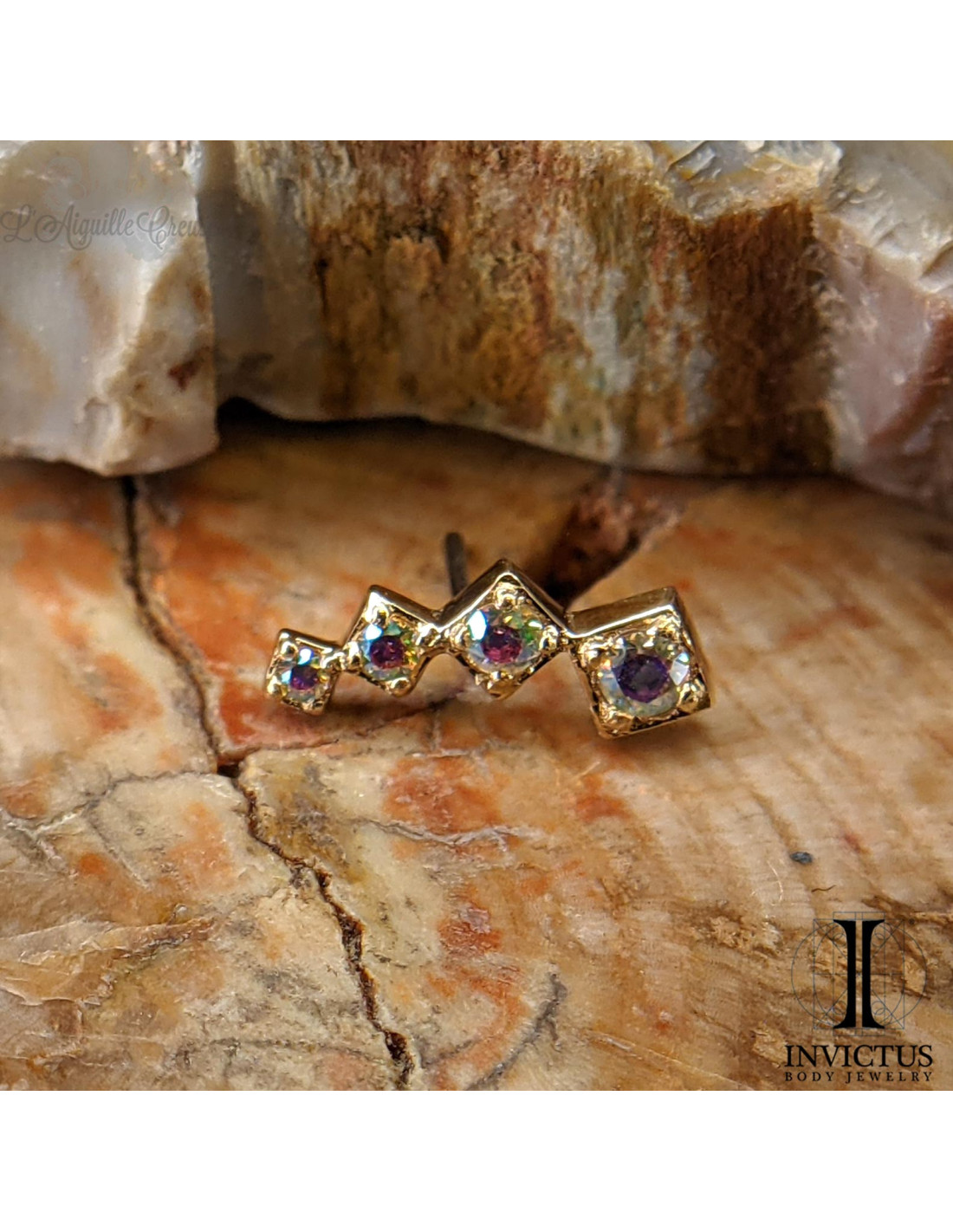 Cluster en or 14 carats  et zircons irisés Threadless - Invictus