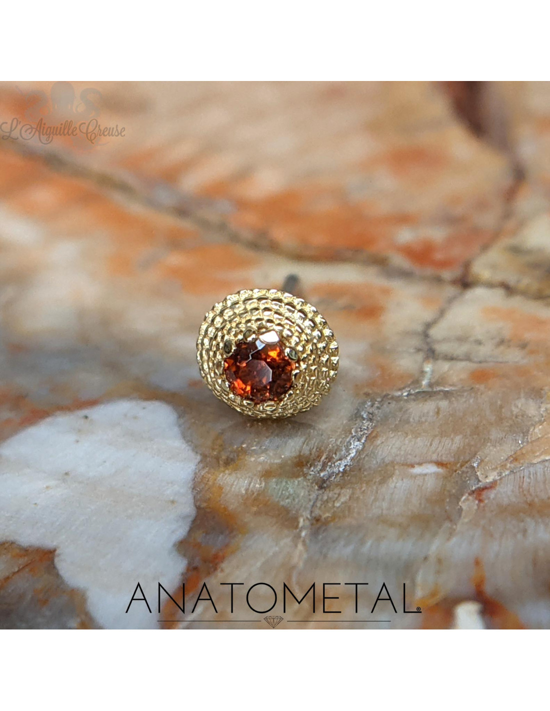 Hera et pierre fine threadless en or jaune 18 carats réalisé par la marque Anatometal. La tige est en titane astm f 136 pour réduire le risque d'usure.La pierre mesure 1.5 mm et l'accessoire complet mesure 3.5 mm.