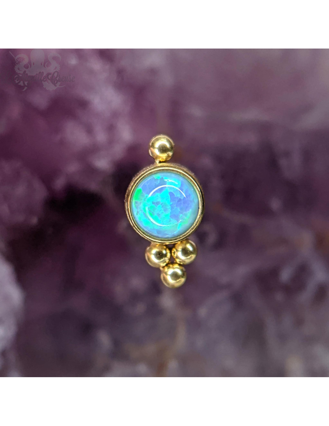 Cabochon éthnique en titane pvd gold d'opale synthétique - Threadless
