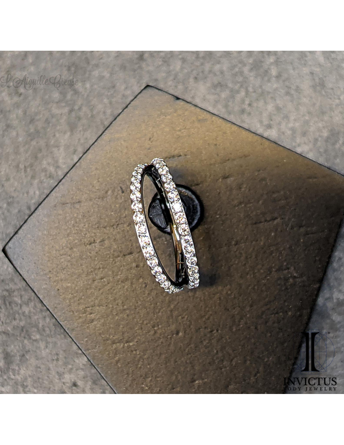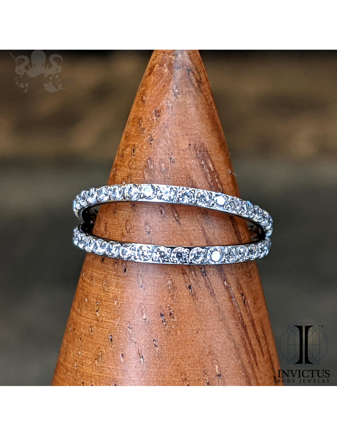 Anneau en titane ASTM F136 Invictus de 1.2 mm de diamètre, orné de zircons prémiums.