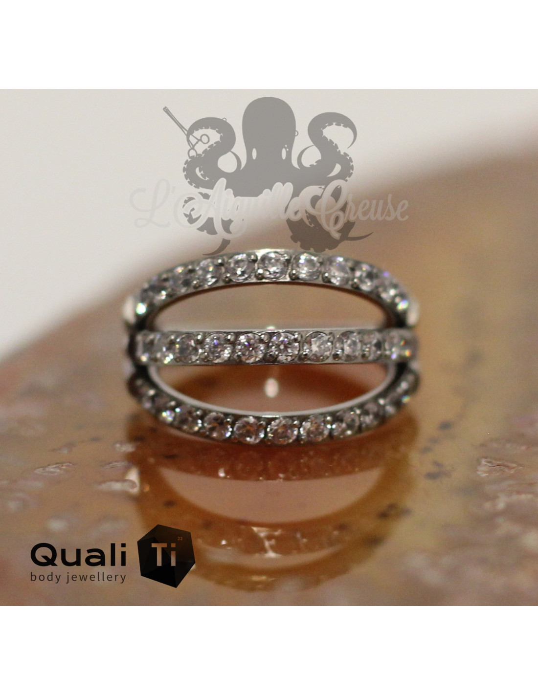 Anneau segmenté en titane QualiTi triple orbite et zircons cubiques, ouverture facile