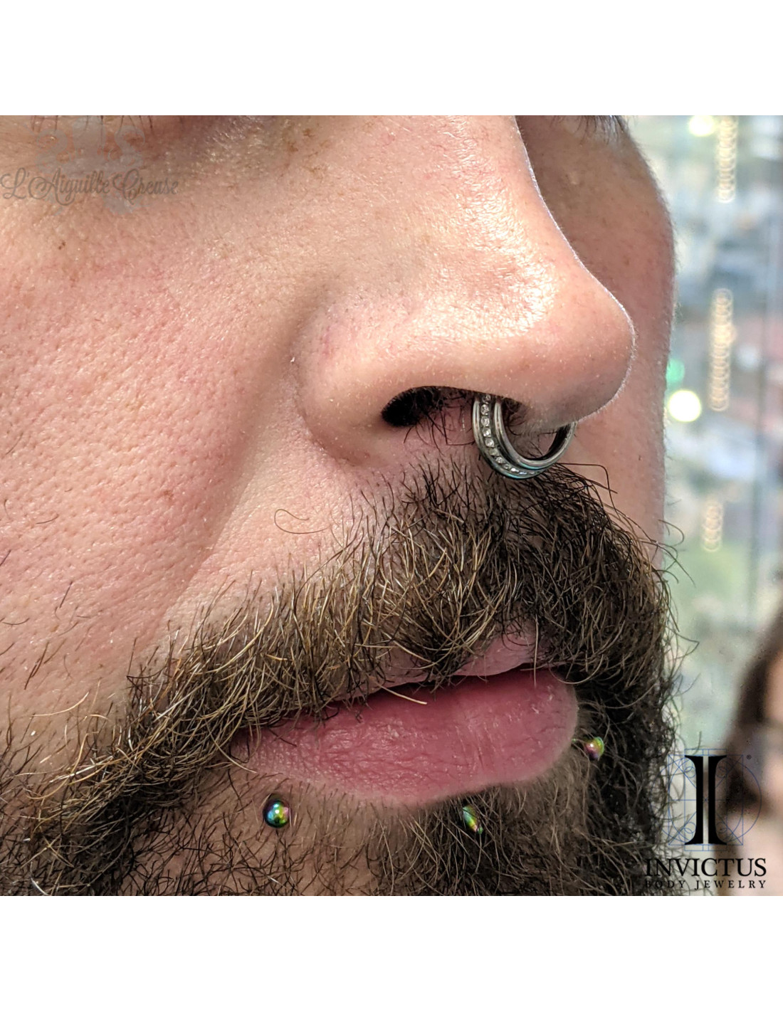 Anneau segmenté en titane QualiTi et opales synthétiques, ouverture facile