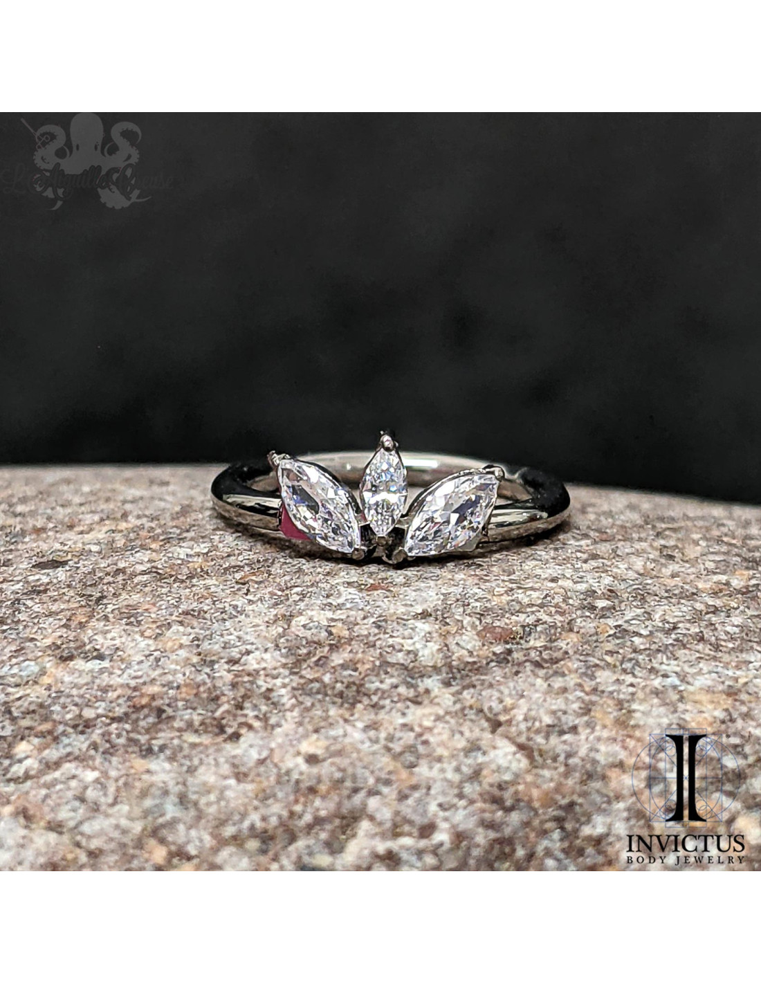 Protector threadless en or blanc 14 carats réalisé par la marque Maya. Il mesure 5 mm.