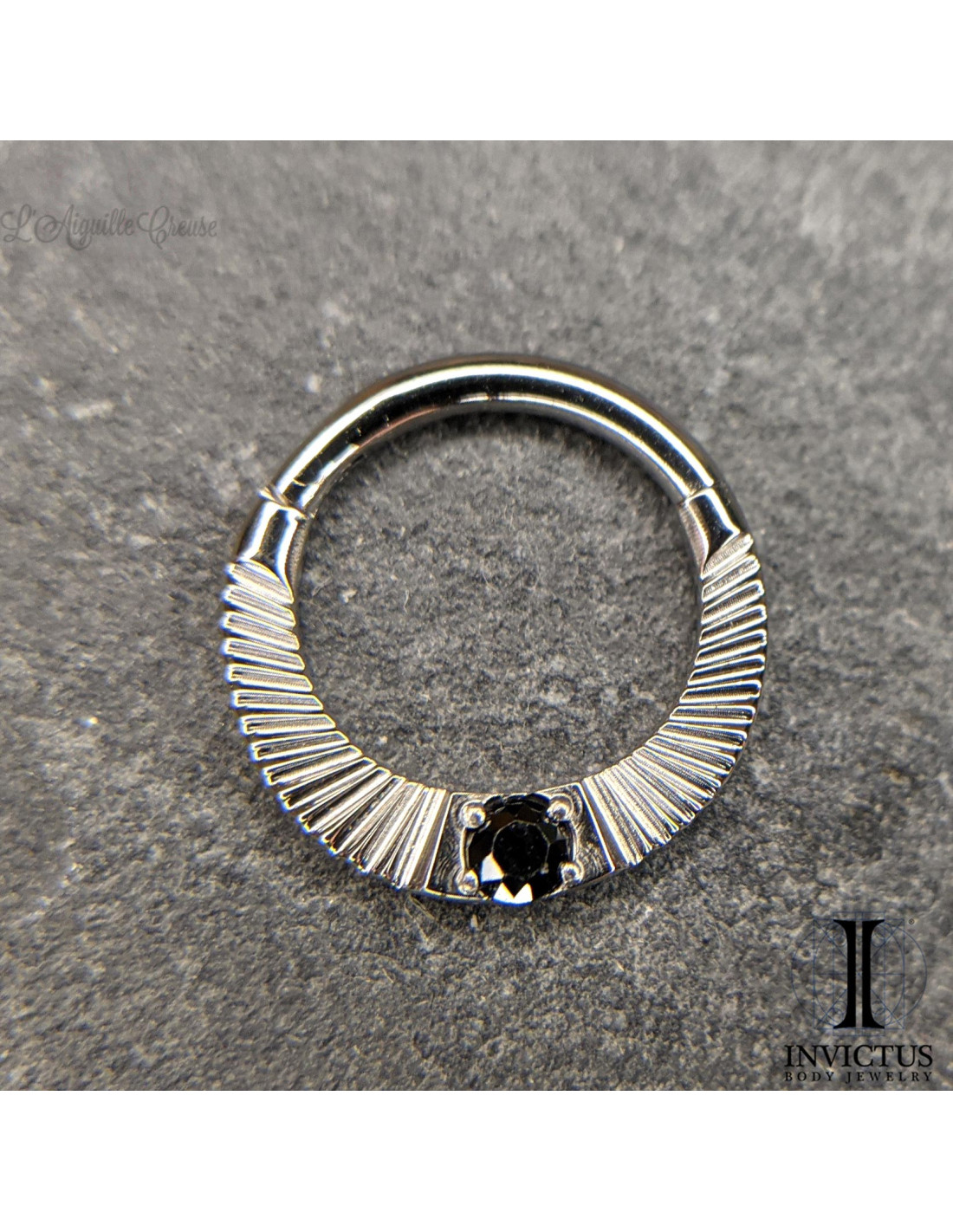Anneau segmenté en titane Invictus et son zircon noir, ouverture facile