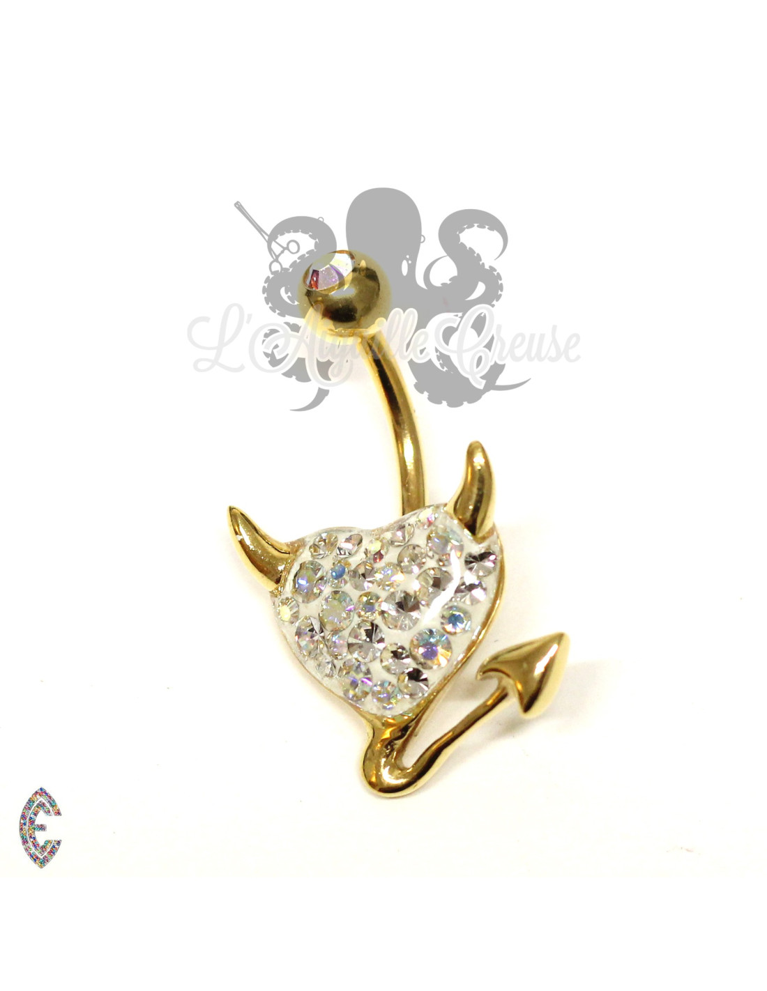 Accessoire threadless en titane implantable (ASTM F-136) pvd or 24 carats orné de zircons.