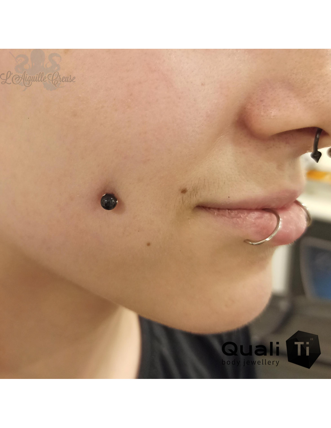 Accessoire QualiTi en titane implantable (ASTM F-136) et Onyx de 4 mm pour bijou en pas de vis interne de 1.6 mm.