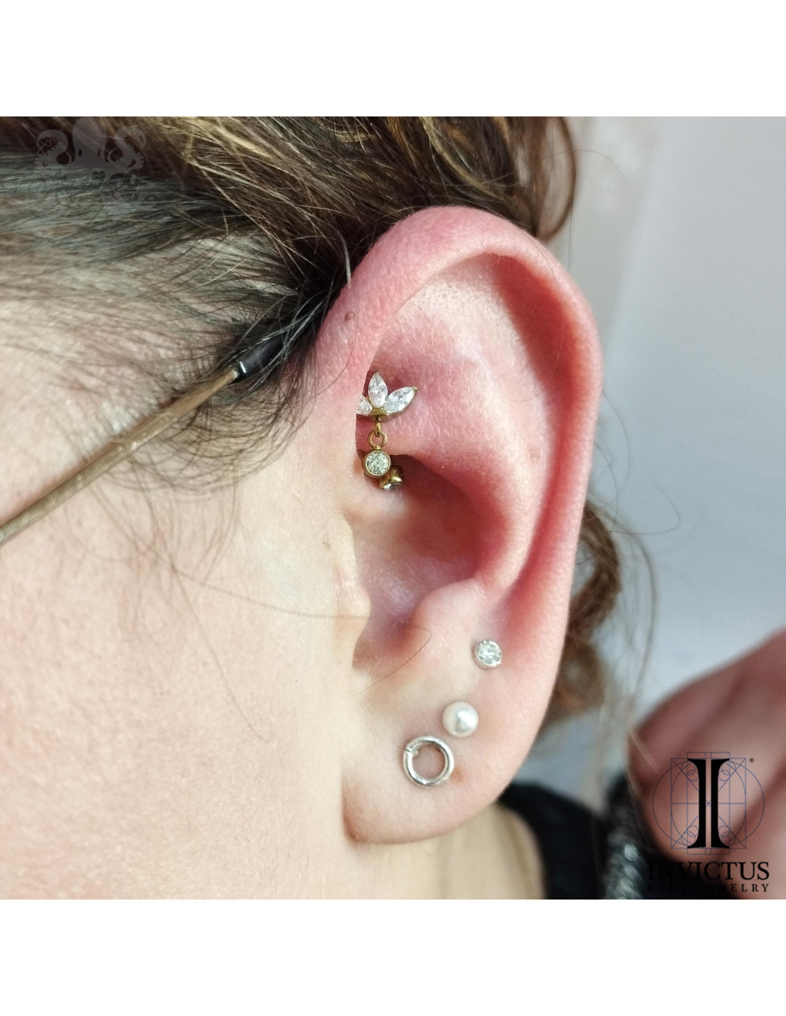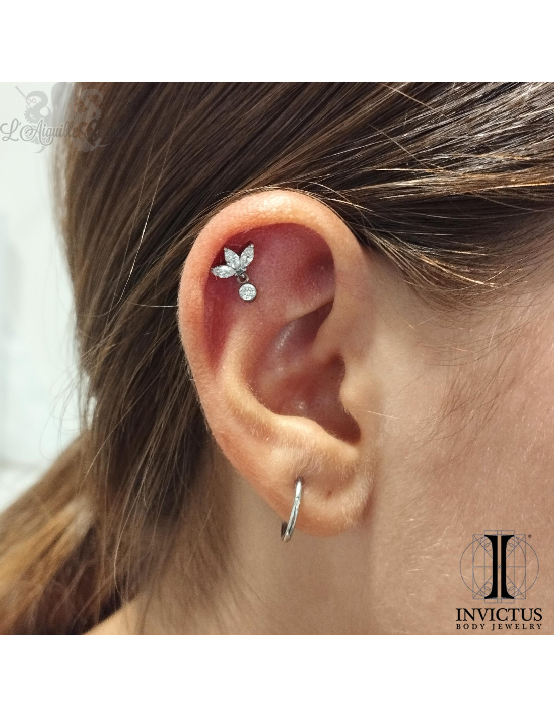 Accessoire threadless en titane implantable (ASTM F-136) orné de zircons premiums.