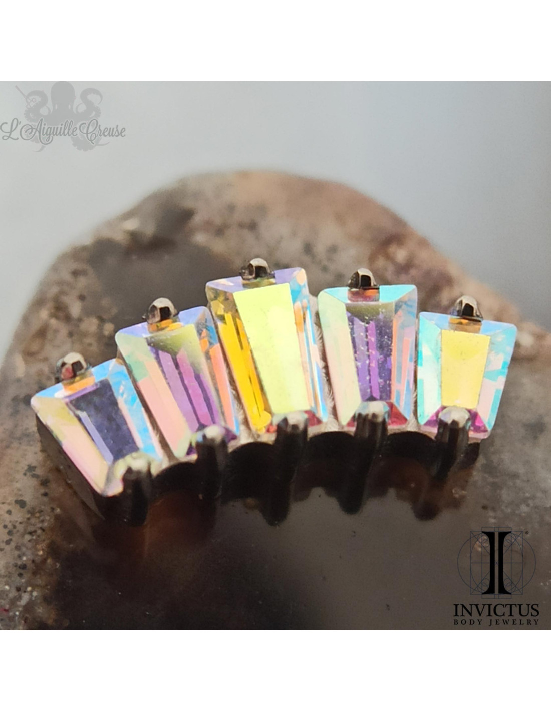 Accessoire threadless en titane implantable (ASTM F-136) orné de zircons premiums.