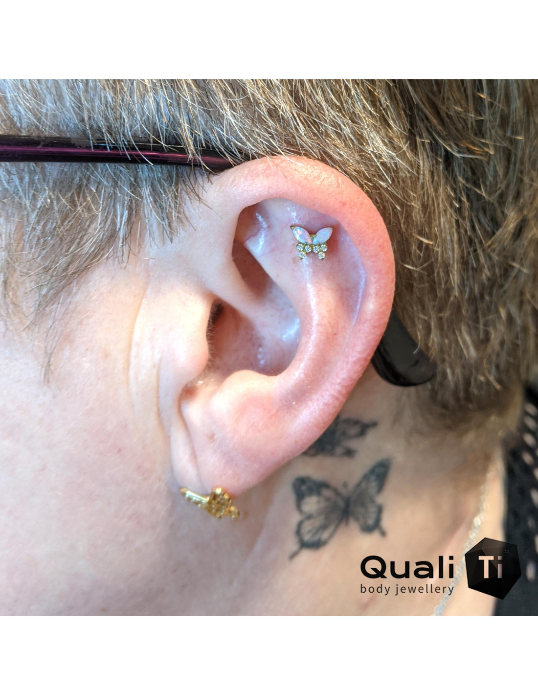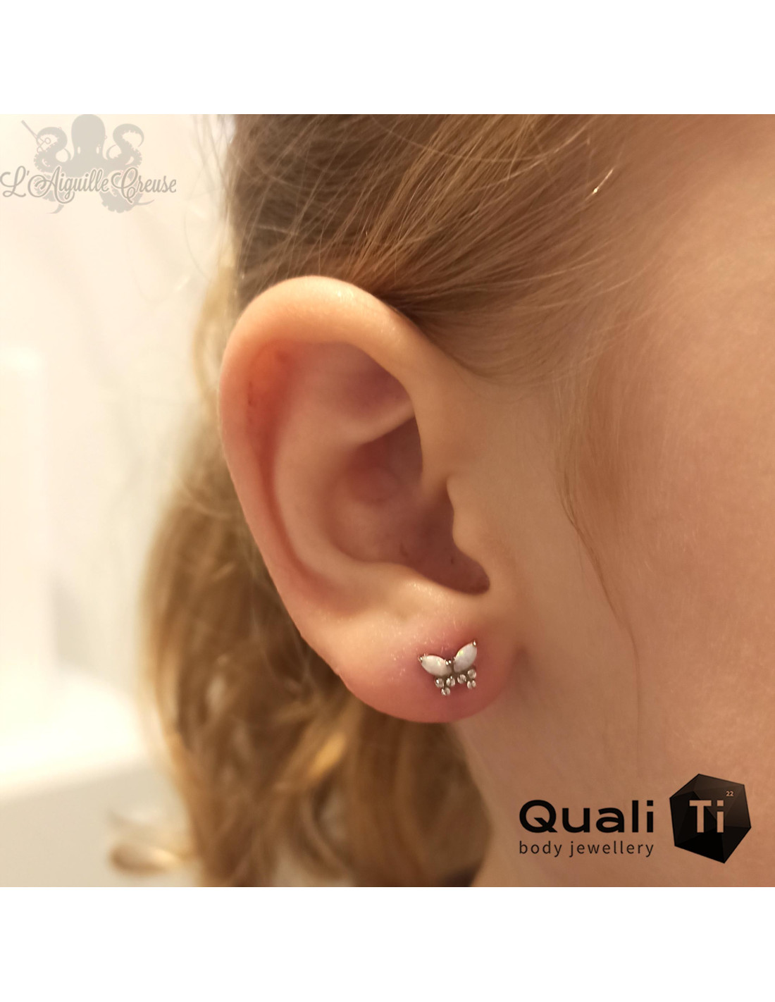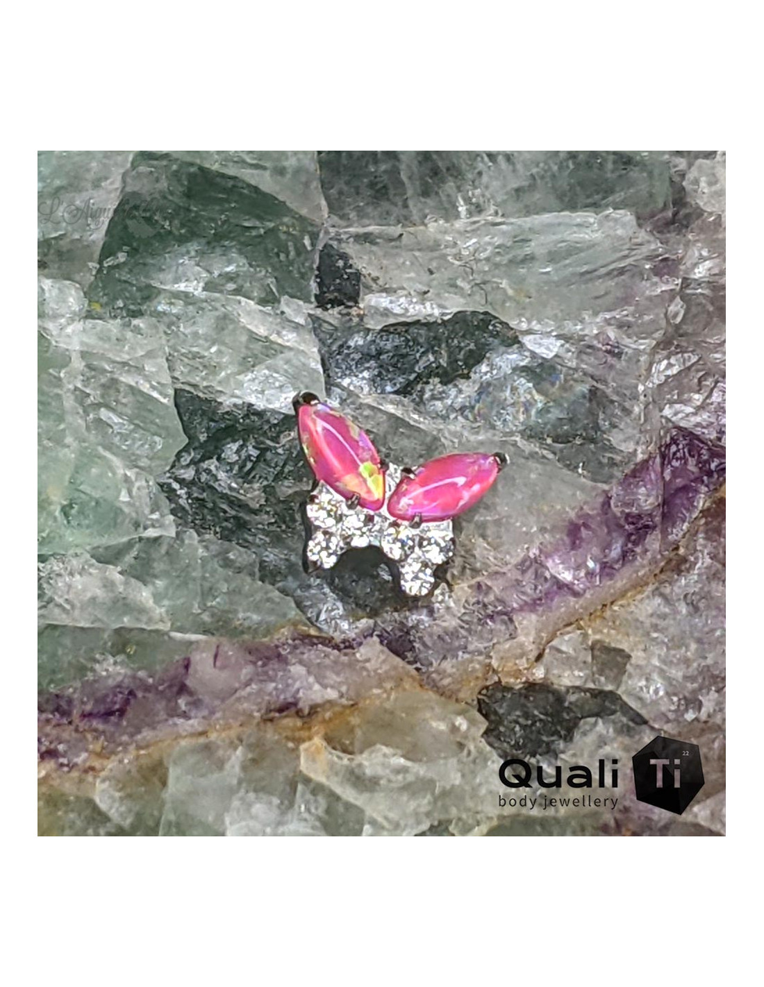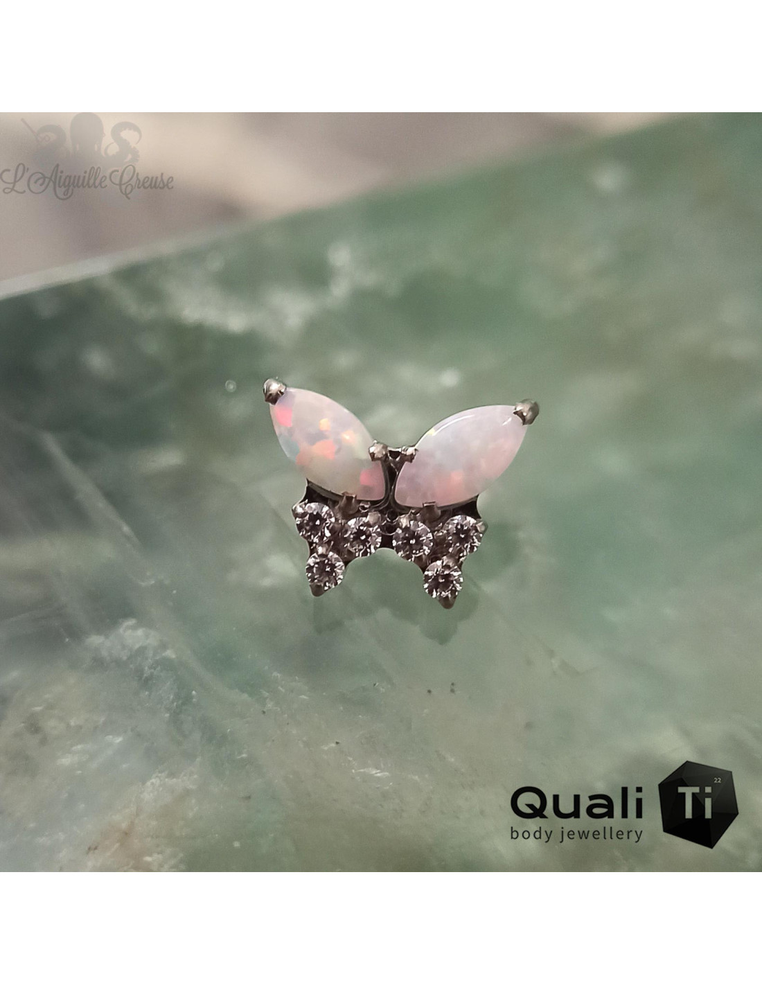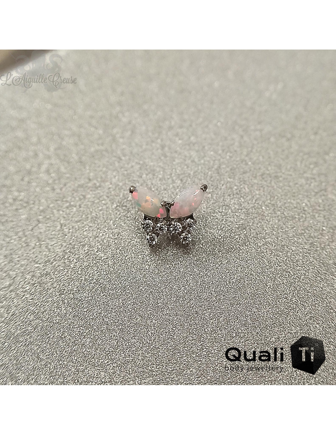 Papillon QualiTi en titane, opales synthétiques et zircons premiums, pour 1 ou 1.2 mm