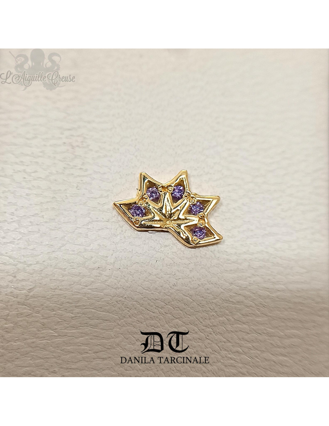 Accessoire "Demi" en or jaune 18 carats et améthystes réalisé par Danila Tarcinale, pour bijou en pas de vis interne de 1.2 mm.
