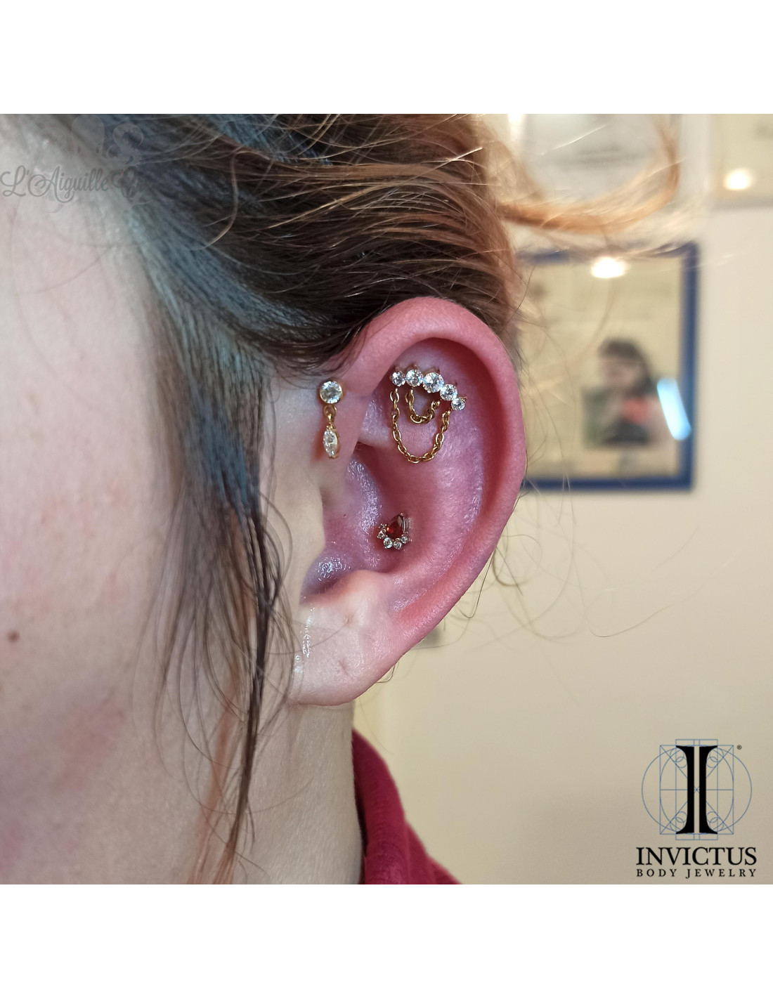 Accessoire threadless en titane implantable (ASTM F-136) pvd or 24 carats orné de zircons.