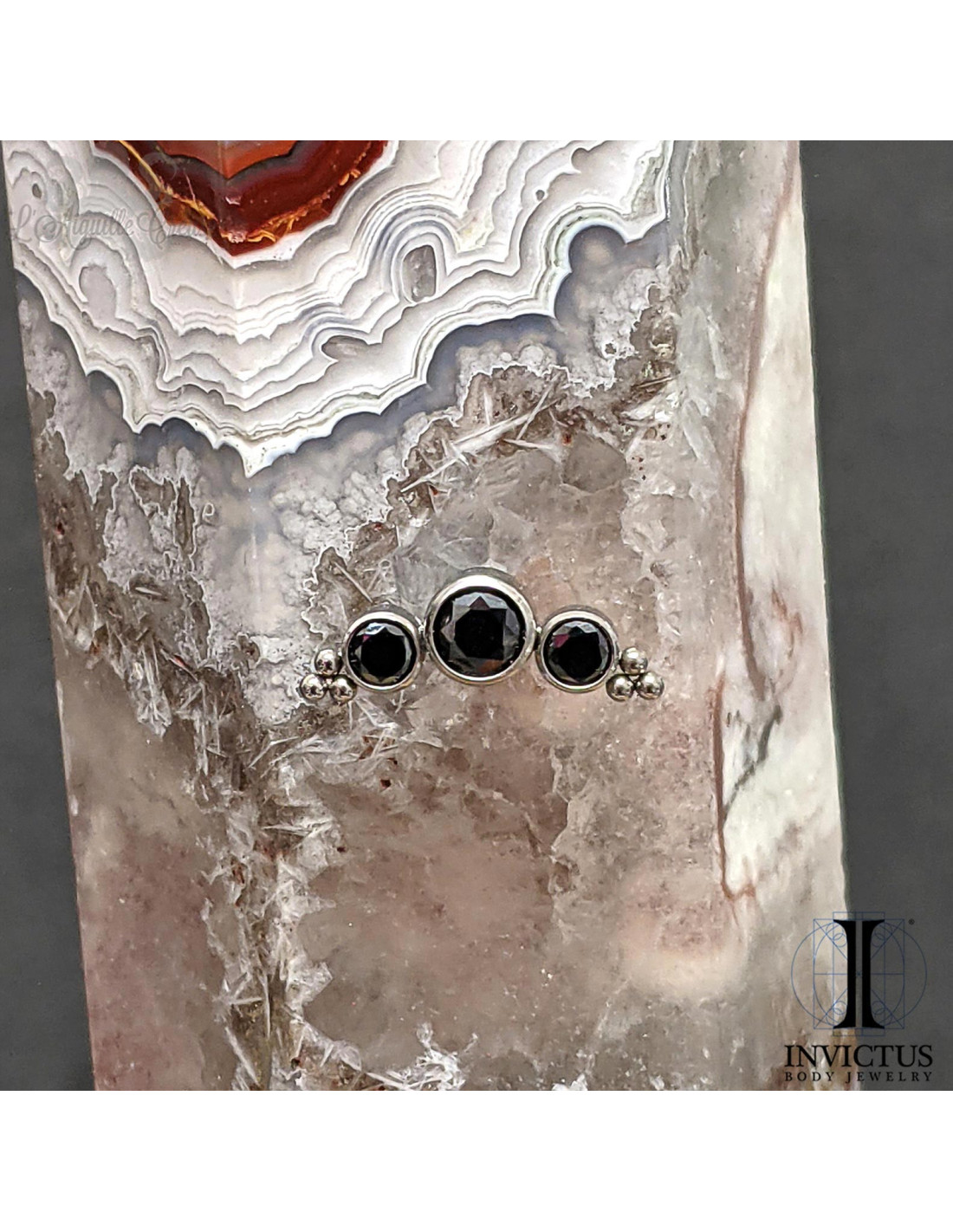 Cluster de zircons noirs Invictus, en titane implantable (ASTM F-136). Il mesure 13mm.