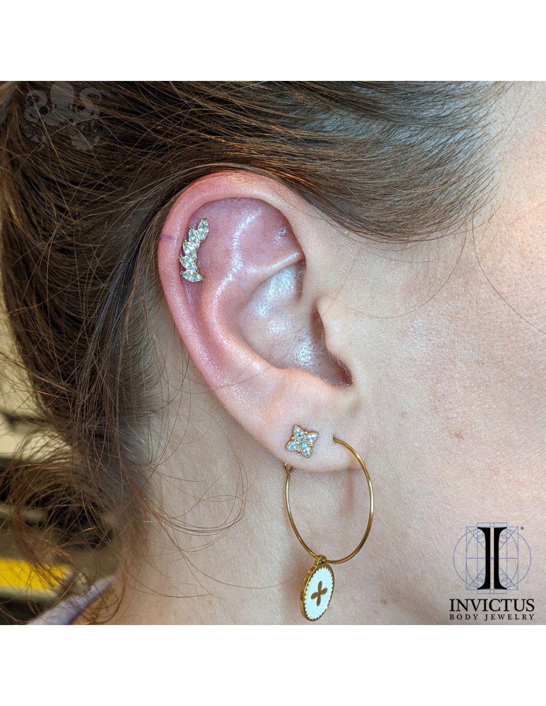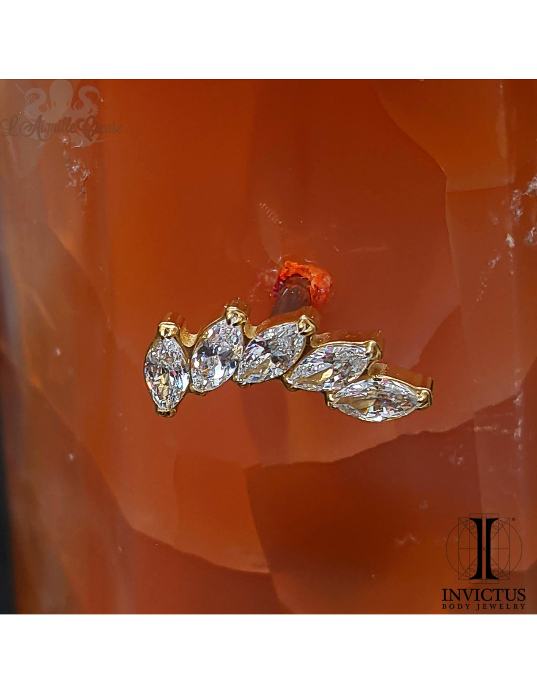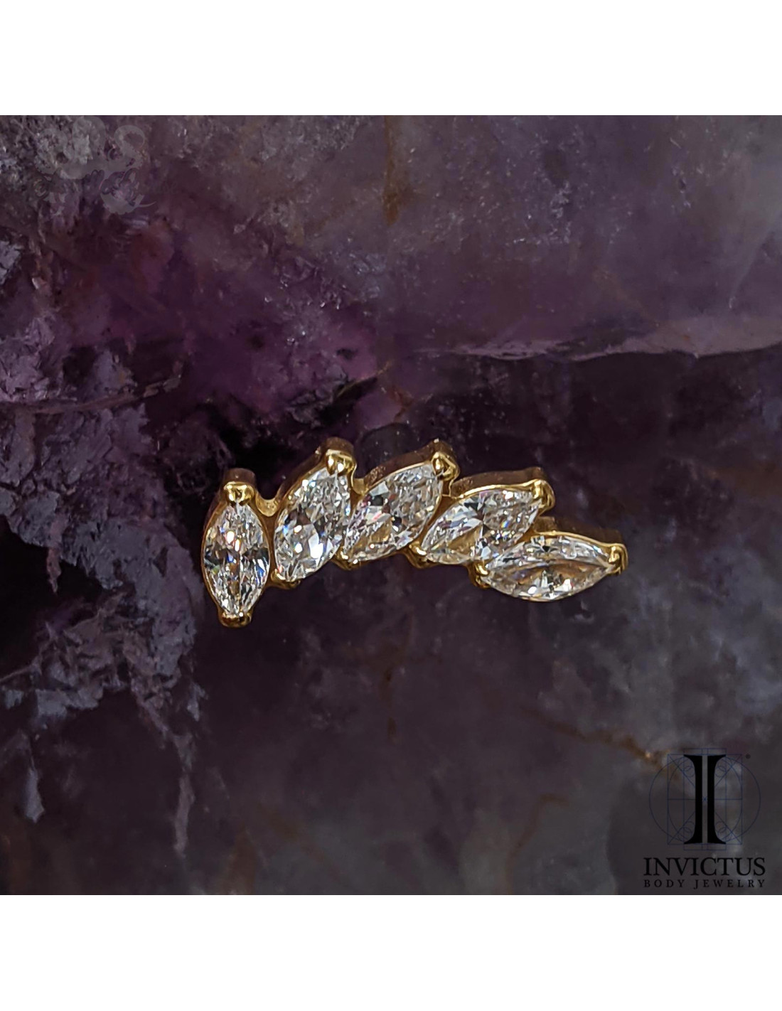 Cluster threadless en titane implantable (ASTM F-136) pvd or 24 carats et ses zircons premiums.