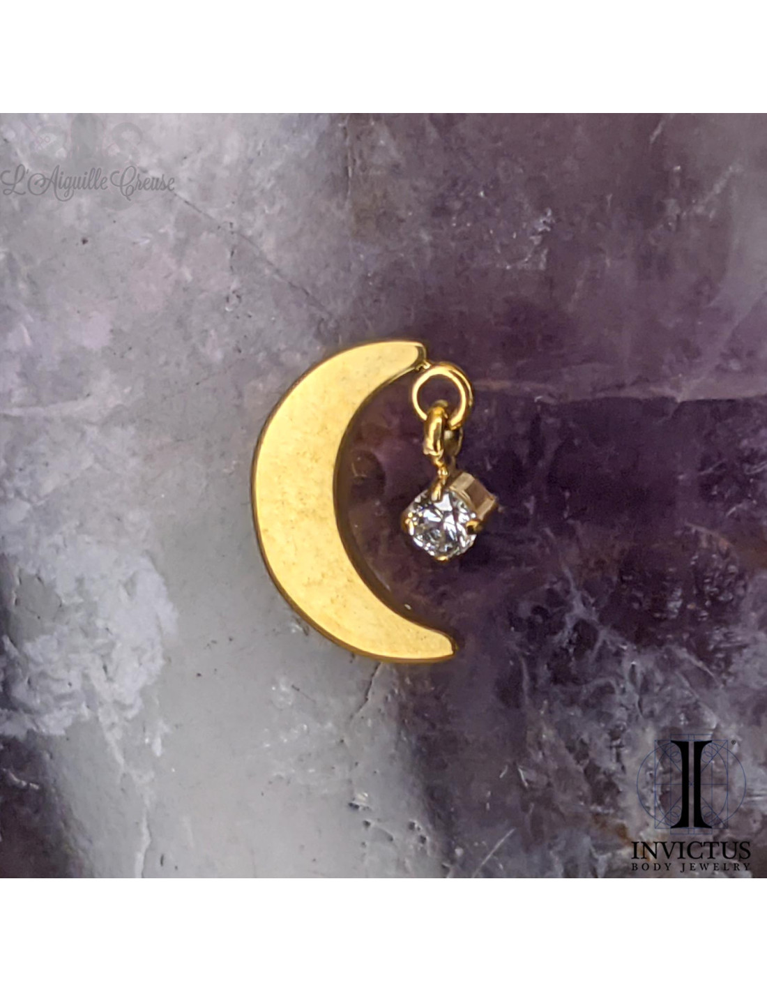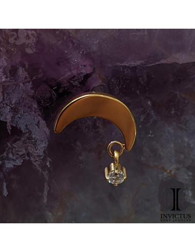 Lune Invictus en titane pvd or 24 carats et zircon- threadless