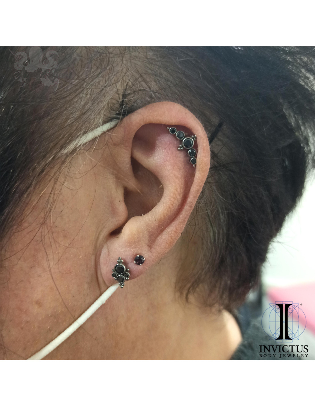 Accessoire threadless en titane implantable (ASTM F-136) orné de zircons premiums.