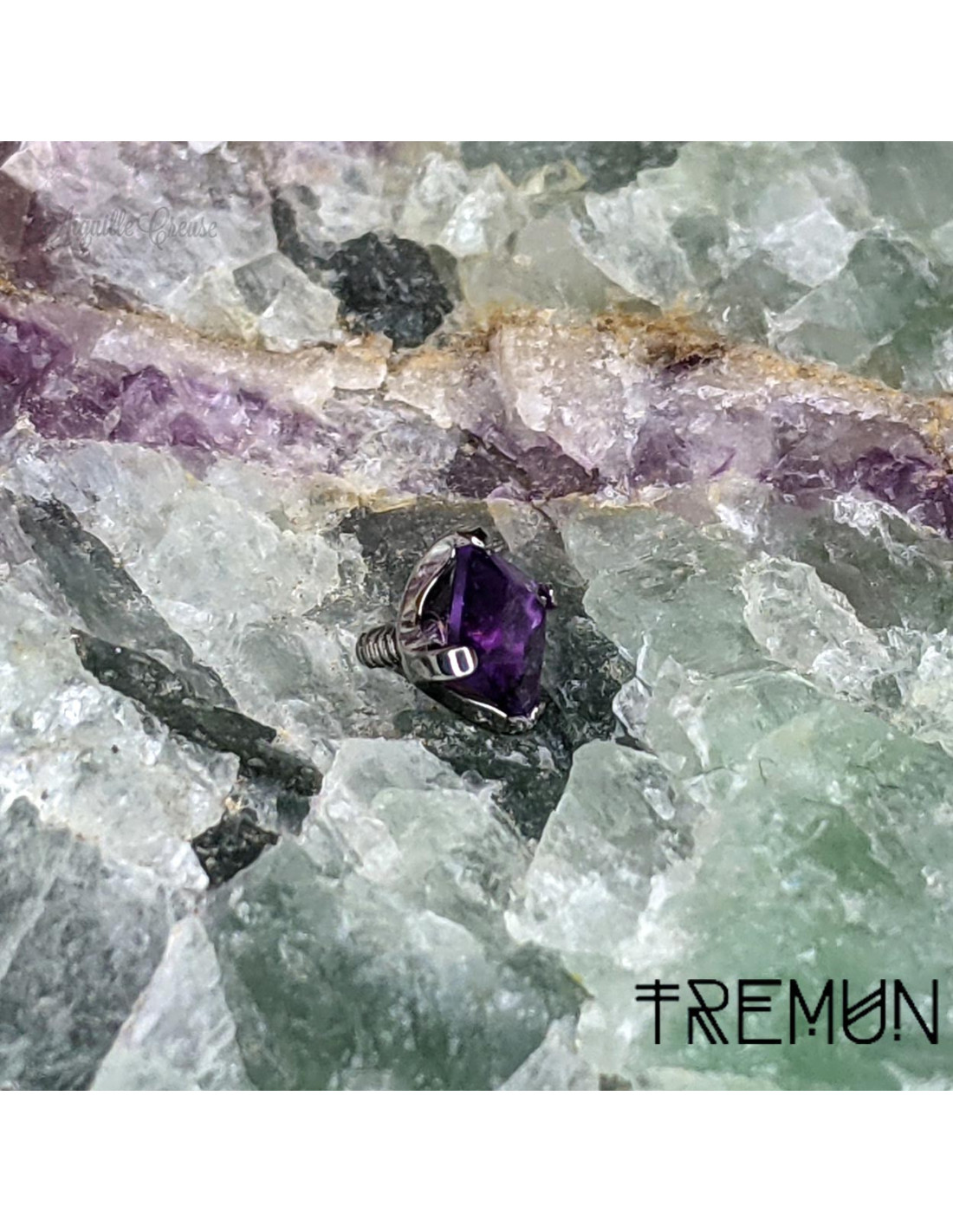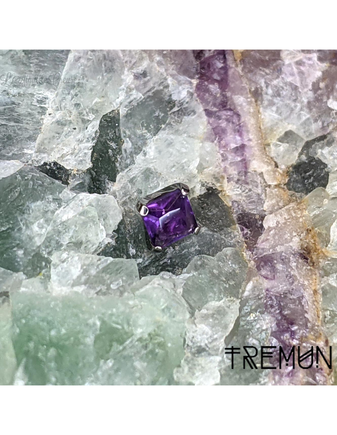Accessoire Tremun en titane implantable (ASTM F-136) et pierre fine au choix, de 3 mm,.