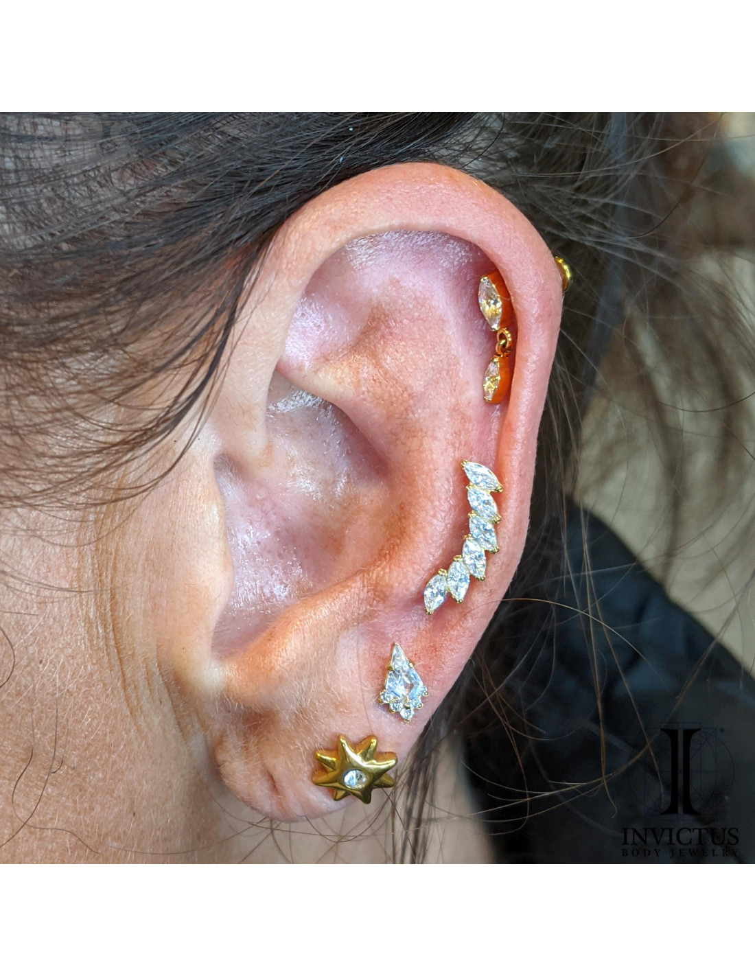Cluster threadless en titane implantable (ASTM F-136) pvd or 24 carats et ses zircons premiums.