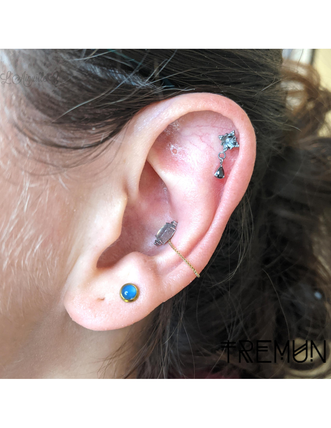 Accessoire Tremun en titane implantable (ASTM F-136) et pierre fine au choix, de 8 mm de longueur par 5 mm de largeur,.