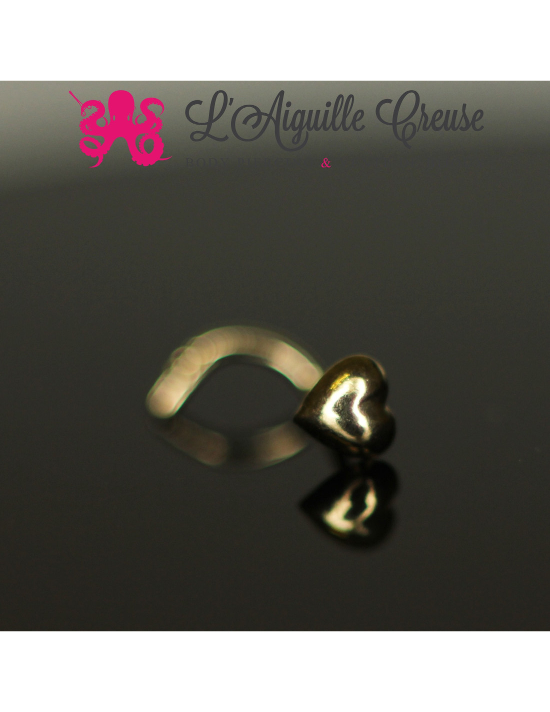 Bijou de narine en argent 925, en forme de L, représentant un nénuphar.