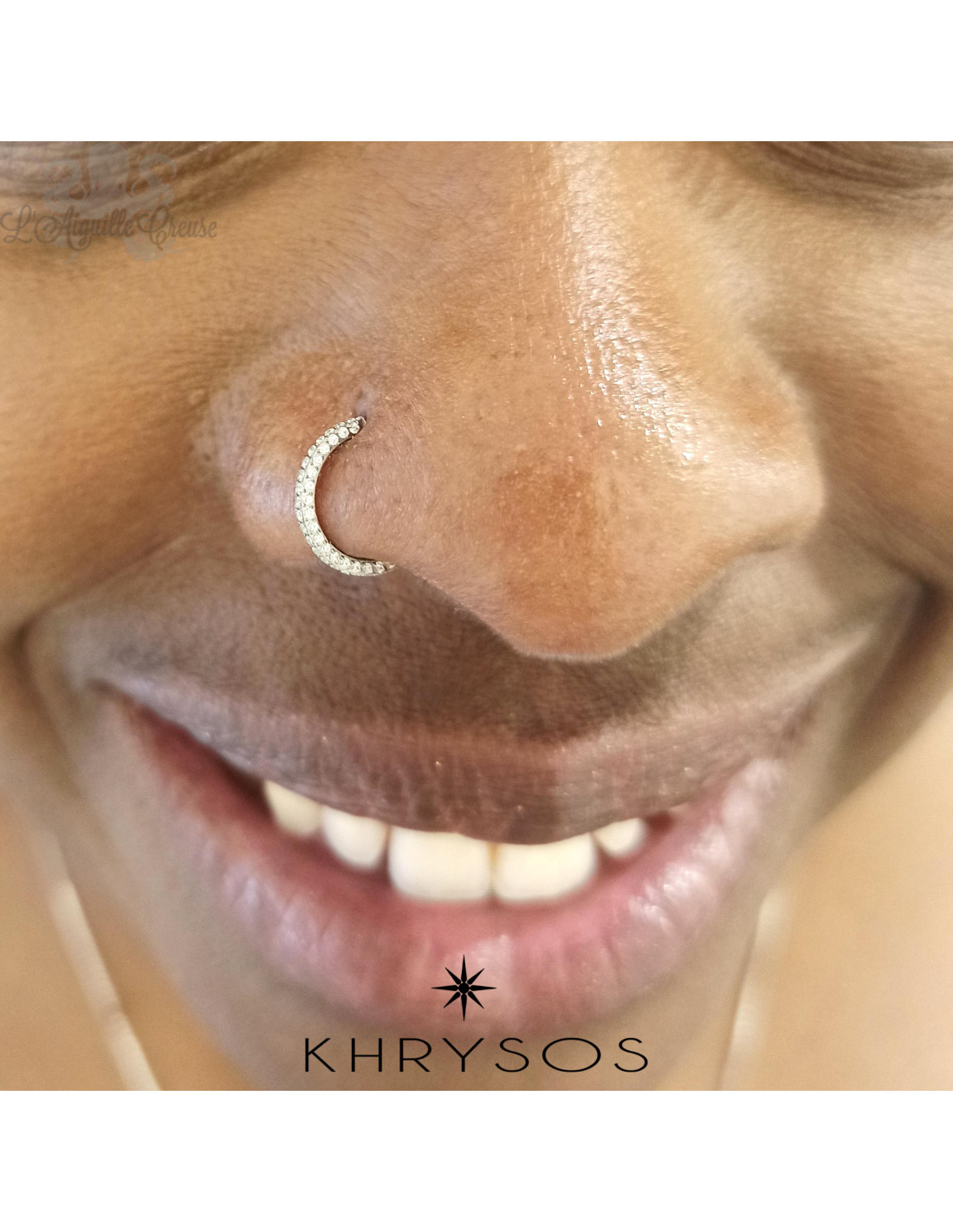 Bijou de narine en or jaune 14 carats, en forme de queue de cochon, orné d'un Saphir Jaune griffé de 2 mm.