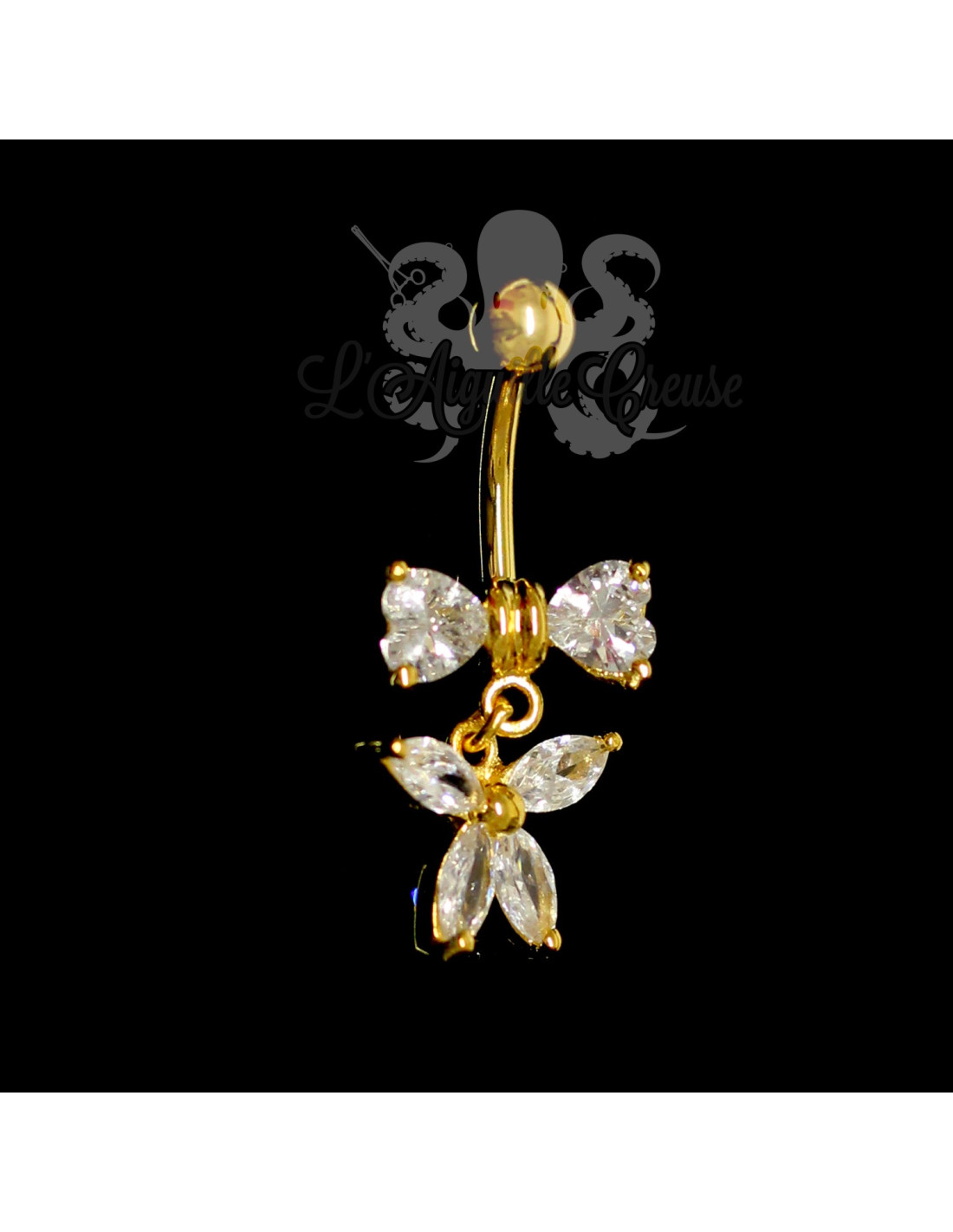 Bijou Noeud en acier chirurgical 316L plaqué or rose 14 carats & zircons.