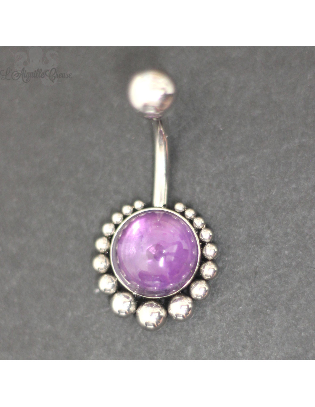 Bijou de nombril en acier chirurgical 316L, et améthyste, jade ou agate bleue au choix.