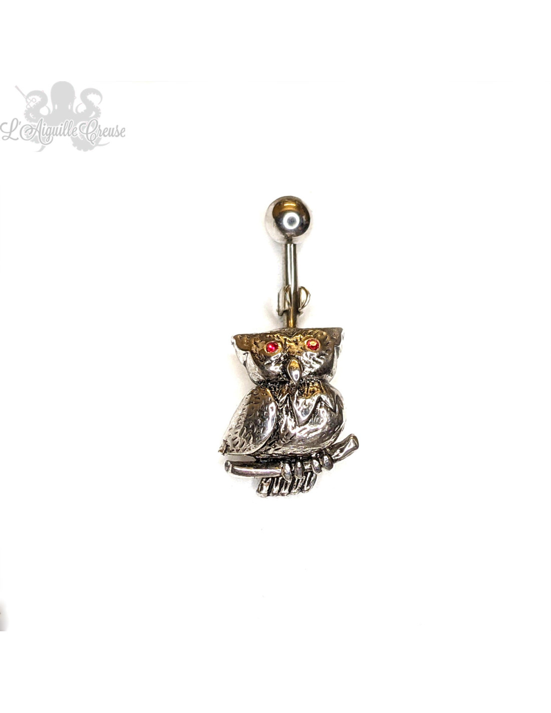 Bijou de nombril en acier chirurgical 316L et feuille plaqué argent.