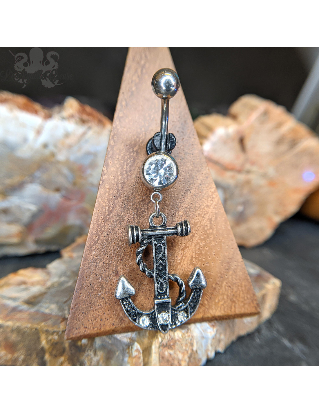 Bijou de nombril en acier chirurgical 316L et zircons.