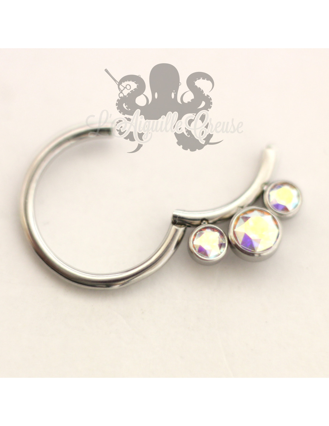 Anneau segmenté 'Tears from the heart' en titane QualiTi et zircons, ouverture facile