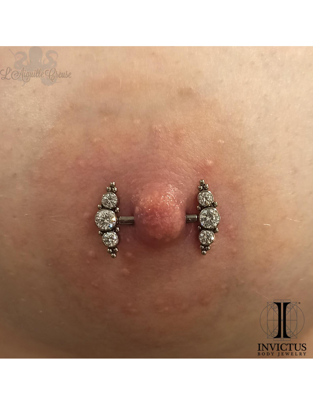 Bijou de nombril Fleur en bronze, pierre fine et acier chirurgical 316L.